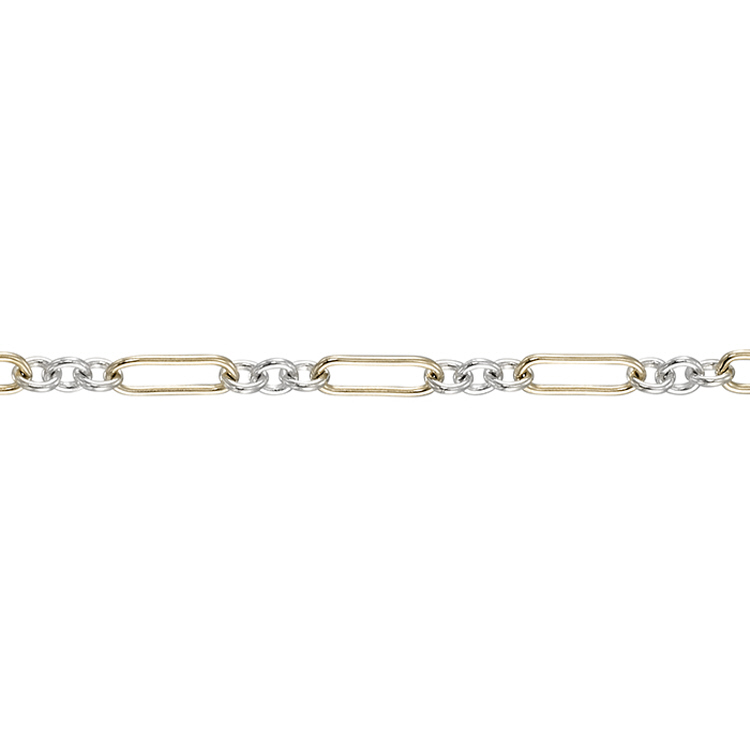 Figaro Chain with three 2.4 x 5.8mm Gold Filled links and five short Sterling Silver links - Two Tone