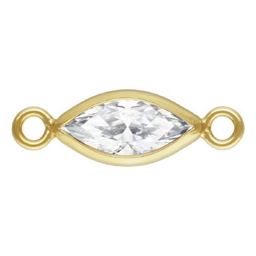 3 x 6mm White/April Birthstone 3A CZ Marquise Bezel Connectors (3 pcs) - Gold Filled