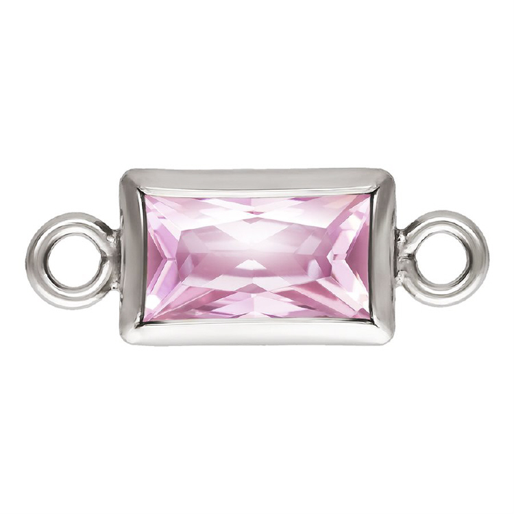 4 x 6mm White/April Birthstone 3A CZ Rectangle Bezel Connectors (3 pcs) - Sterling Silver