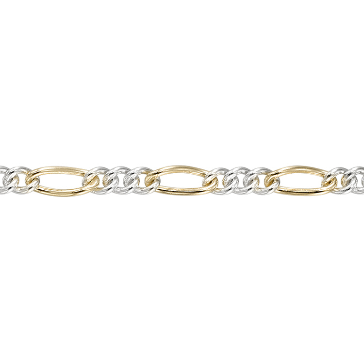 Figaro Chain 3.3 x 7.5mm - Two Tone Sterling Silver Gold Filled