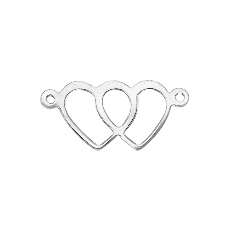 8.7 x 18.1mm Double Cut Out Heart Connectors (3 pcs) - Sterling Silver
