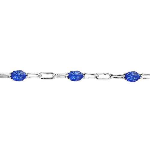 Blue Sapphire Enamel Chain 1.8 x 3.7mm with 1.5 x 3.7mm 3 paper clip links - Sterling Silver