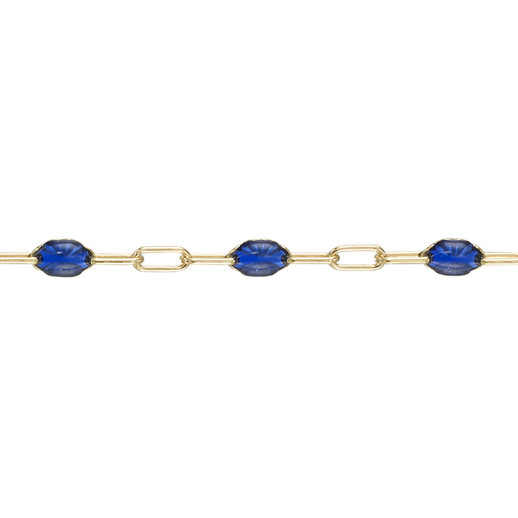 Blue Sapphire Enamel Chain 1.8 x 3.7mm with 1.5 x 3.7mm 3 paper clip links - Gold Filled