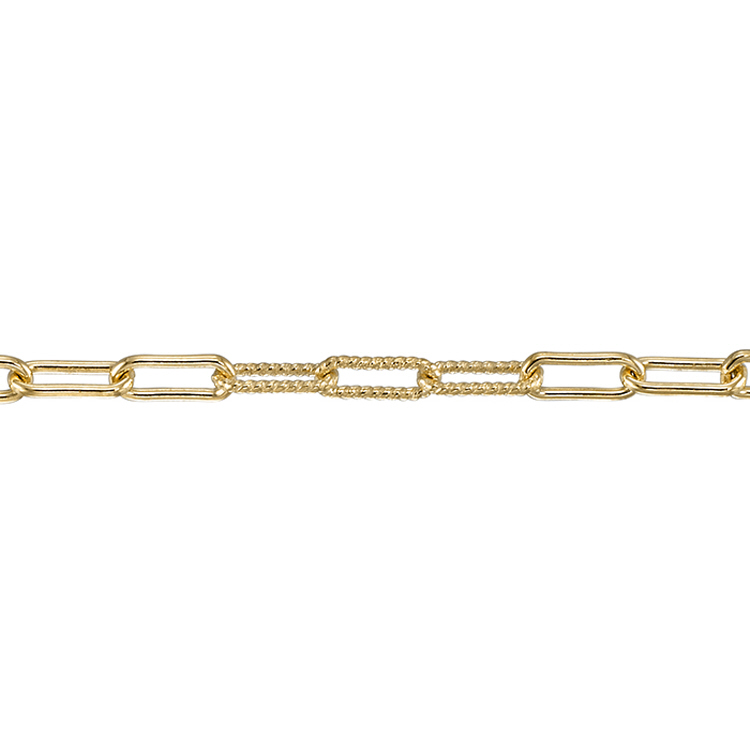 Paperclip chain with 1 textured and 3 plain 2.2 x 5.6mm links - Gold Filled