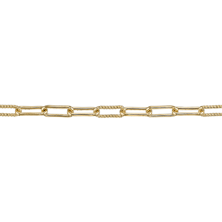 Paperclip chain with 1 textured and 3 plain 2.2 x 5.6mm links - Gold Filled