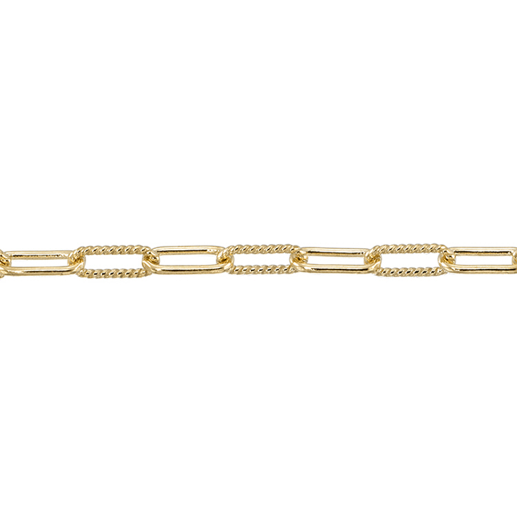 Paperclip chain with 1 textured and 1 plain 2.2 x 5.6mm links - Gold Filled