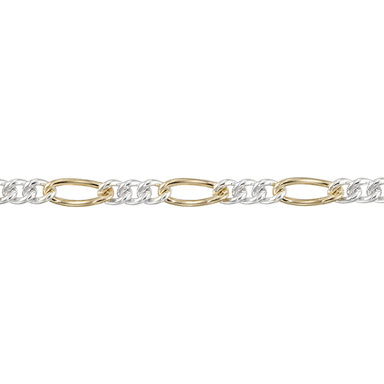 Figaro Chain 3.3 x 7.5mm - Two Tone Sterling Silver Gold Filled
