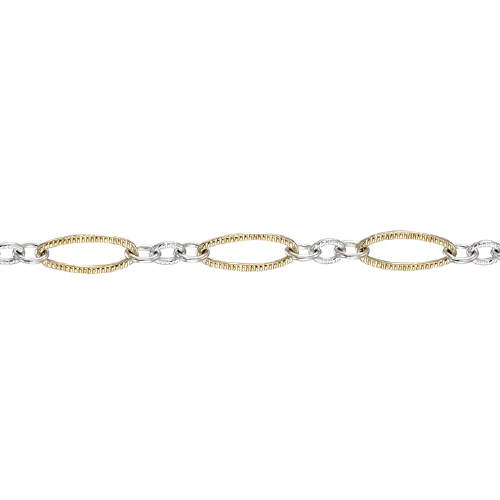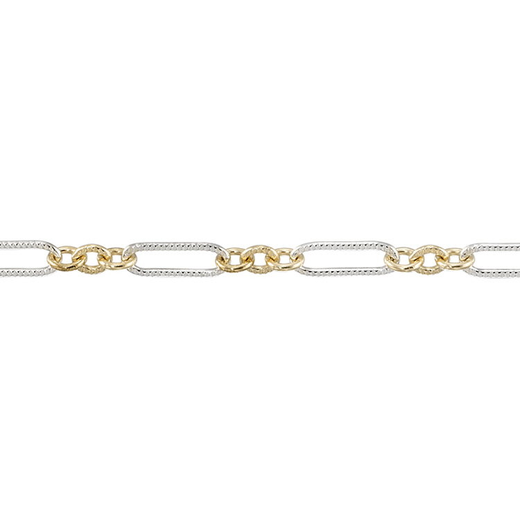 Long & Short Textured Chain 1.6 x 4.75mm - Long Gold Filled & Short Sterling Silver links Two Tone Chain