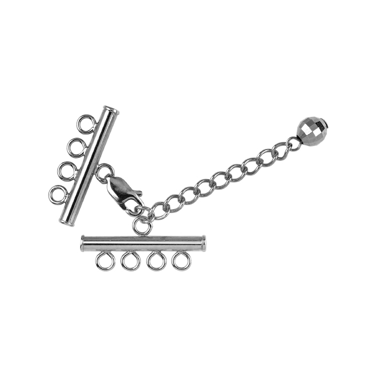 Bar Clasp w/ Chain & Lobster 4 Line - Sterling Silver