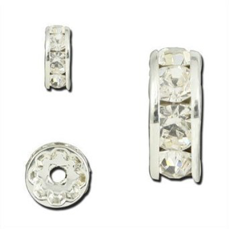 Rhinestone Rondells (8mm) - Silver Plated (20pcs/pkt)