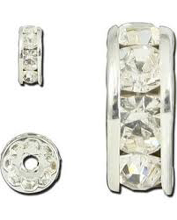 Rhinestone Rondells (8mm) - Silver Plated (20pcs/pkt)