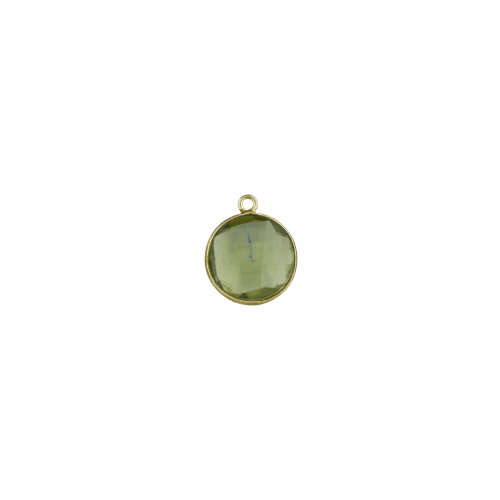 13mm Round Pendant - Green Amethyst - Sterling Silver Gold Plated