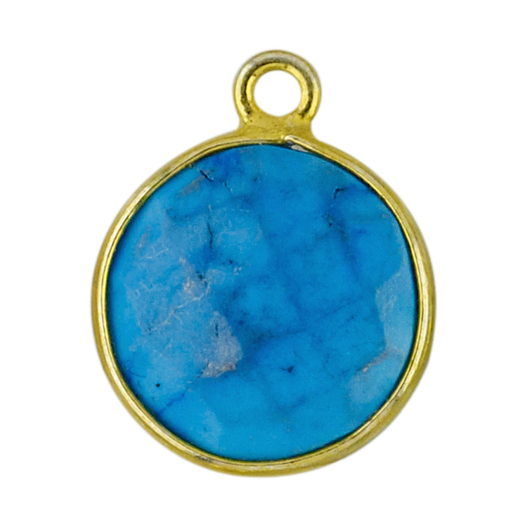 13mm Round Pendant - Turquoise - Sterling Silver Gold Plated
