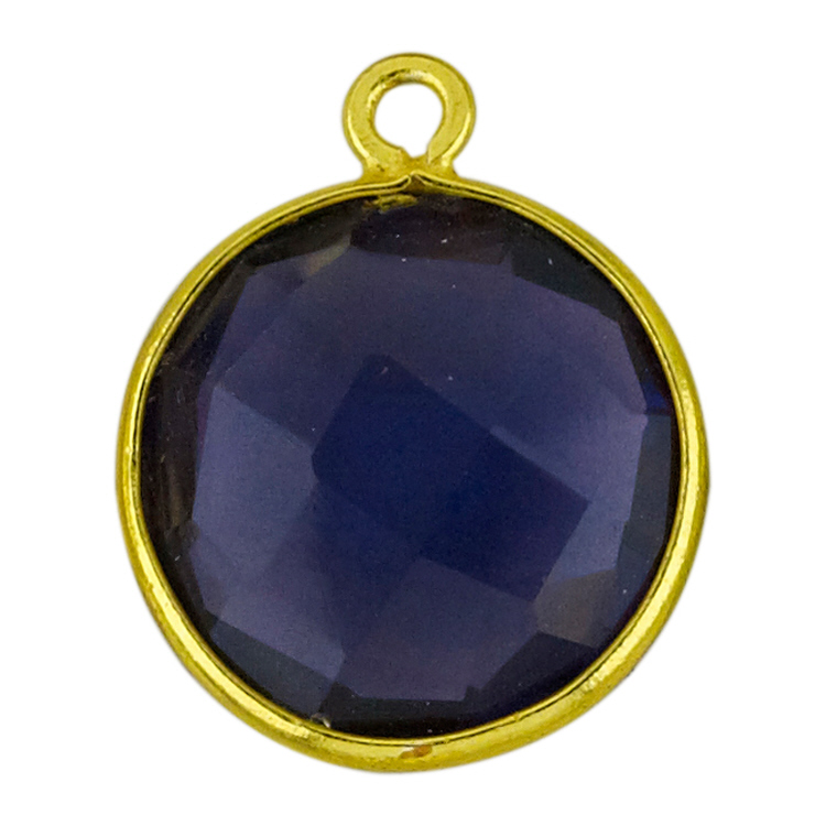 15mm Round Pendant - Purple Amethyst - Sterling Silver Gold Plated