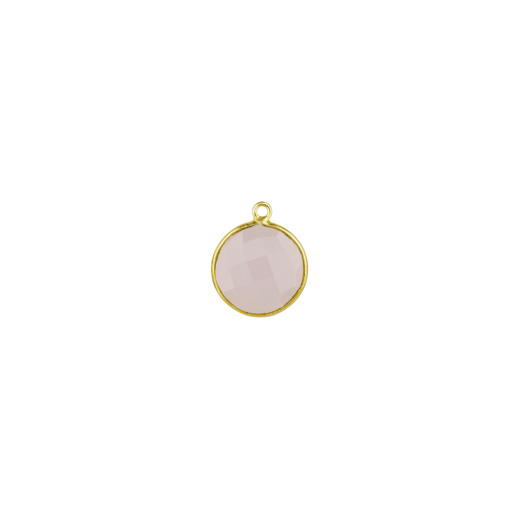 15mm Round Pendant - Pink Quartz - Sterling Silver Gold Plated