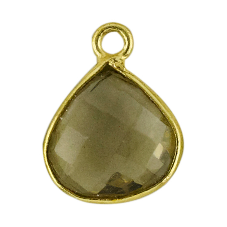 11mm Heart Pendant - Smoky - Sterling Silver Gold Plated