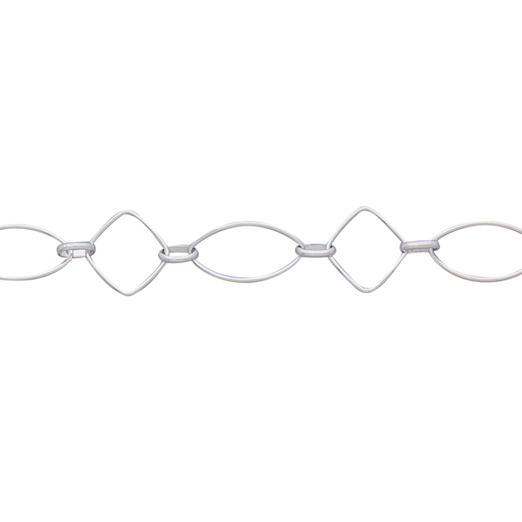 Pl Oval-link-Square Chain - Sterling Silver