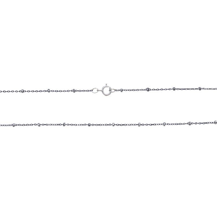 Satellite Chain with Bright Silver Diamond Cut Beads 18" with spring ring - 1 x 1.2mm - Sterling Silver Oxidized