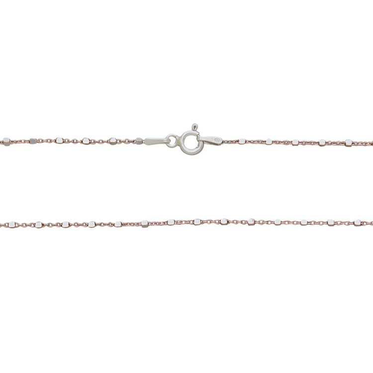 Satellite Chain with Sterling Silver Diamond Cut Beads 18" with spring ring - Sterling Silver Rose Gold Plated