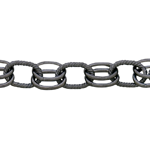 Textured oblong with double plain oblong chain - Sterling Silver Oxidized
