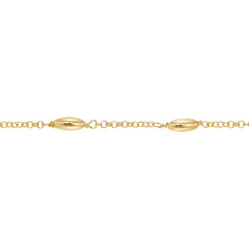1.7mm Cable Chain with 3 x 7.4mm Plain Oval Bead - Sterling Silver Gold Plated