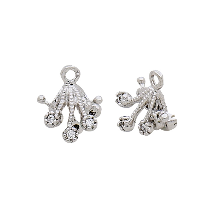 Bead Cap w/Cubic Zirconia (CZ) - Sterling Silver Rhodium Plated