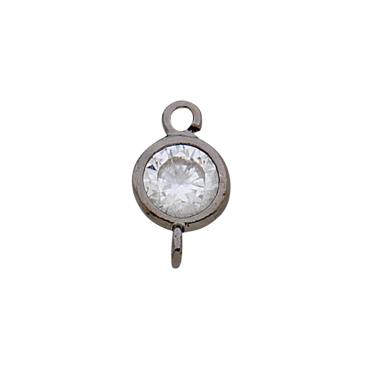 3mm Bezzeled Round Connector w/Cubic Zirconia (CZ) - Sterling Silver Black Rhodium Plated