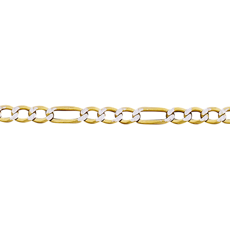 Figaro Chain Diamond Cut Flat Chain 3mm - Sterling Silver Gold Plated