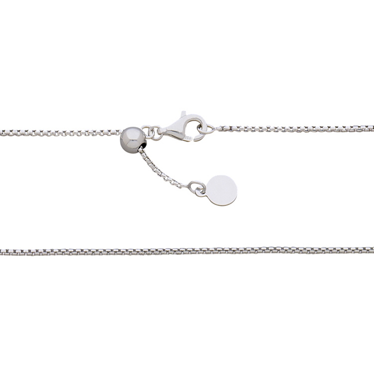 Adjustable Round Box chain 1mm 16" - 22" with lobster - Sterling Silver