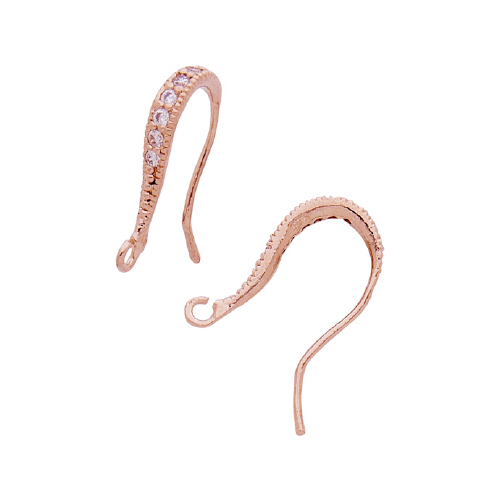 Earwire - Regular w/Cubic Zirconia (CZ) - 15.9mm - Sterling Silver Rose Gold Plated