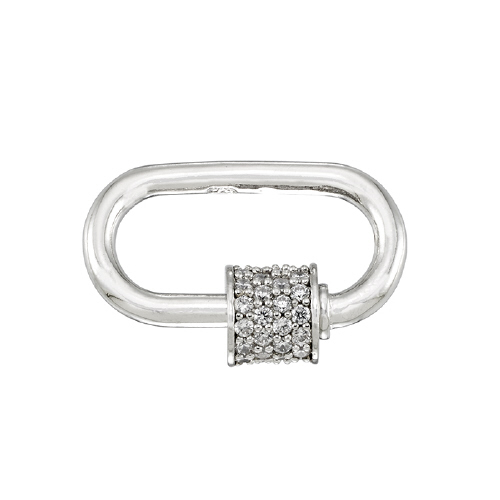 Carabiner Clasp w/Cubic Zirconia (CZ) 11.8 x 18.9mm - Sterling Silver Rhodium Plated