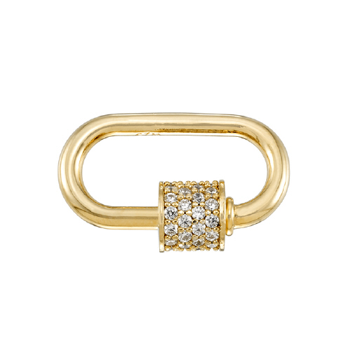 Carabiner Clasp w/Cubic Zirconia (CZ) 11.8 x 18.9mm - Sterling Silver Gold Plated