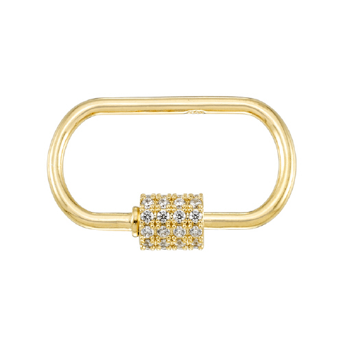 Carabiner Clasp w/Cubic Zirconia (CZ) 15.1 x 23.4mm - Sterling Silver Gold Plated