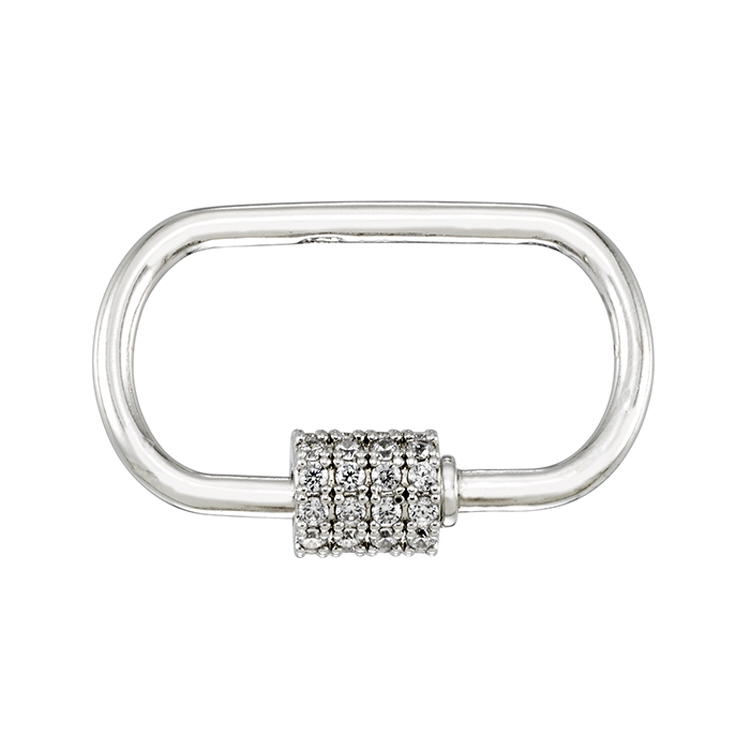 Carabiner Clasp w/Cubic Zirconia (CZ) 15.1 x 23.4mm - Sterling Silver Rhodium Plated