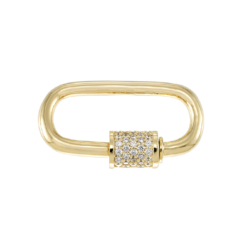 Carabiner Clasp w/Cubic Zirconia (CZ) 11.8 x 18.9mm - Sterling Silver Gold Plated