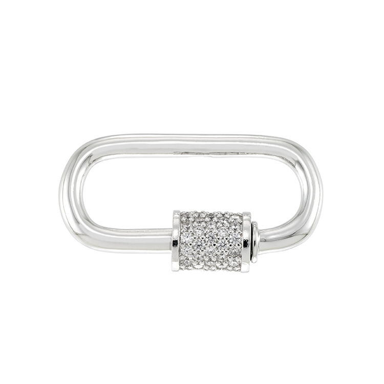 Carabiner Clasp w/Cubic Zirconia (CZ) 15.1 x 23.4mm - Sterling Silver Rhodium Plated
