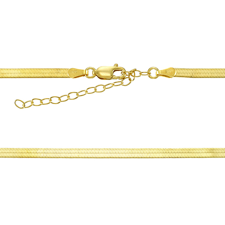 Herringbone Chain 0.4 x 3mm 16" plus 2" extension with lobster - Sterling Silver Gold Plated with anti tarnish