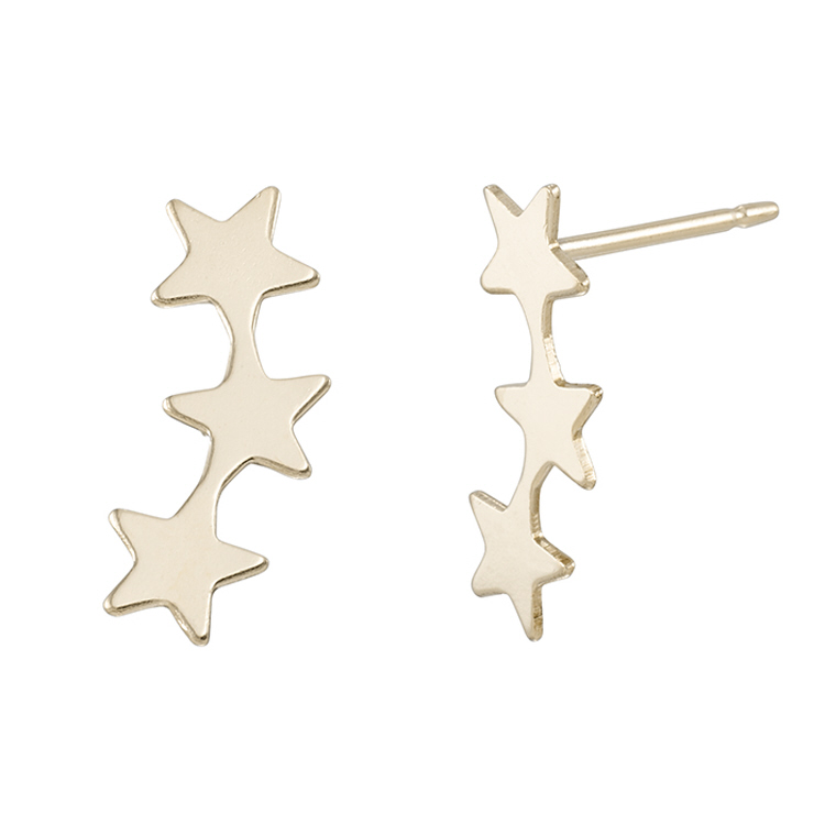 5.9 x 14.4mm 3 Star Post Earrings - Gold Filled
