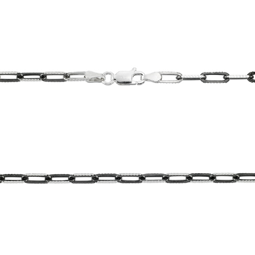 Pave Paper Clip Chain 3.3 x 8.8mm 18" with lobster - Stelring Silver Black Diamond Two Tone