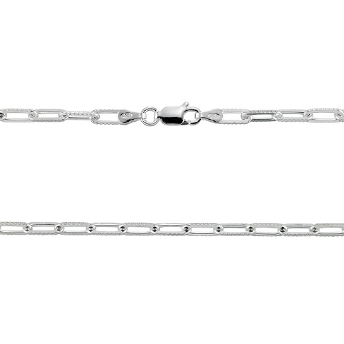 Pave Paper Clip Chain 3.3 x 8.8mm 20" with lobster - Stelring Silver