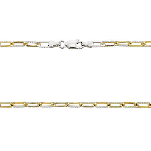 Pave Look Paper Clip Chain 3.3 x 8.8mm 20" with lobster - Stelring Silver Gold Plated Two Tone