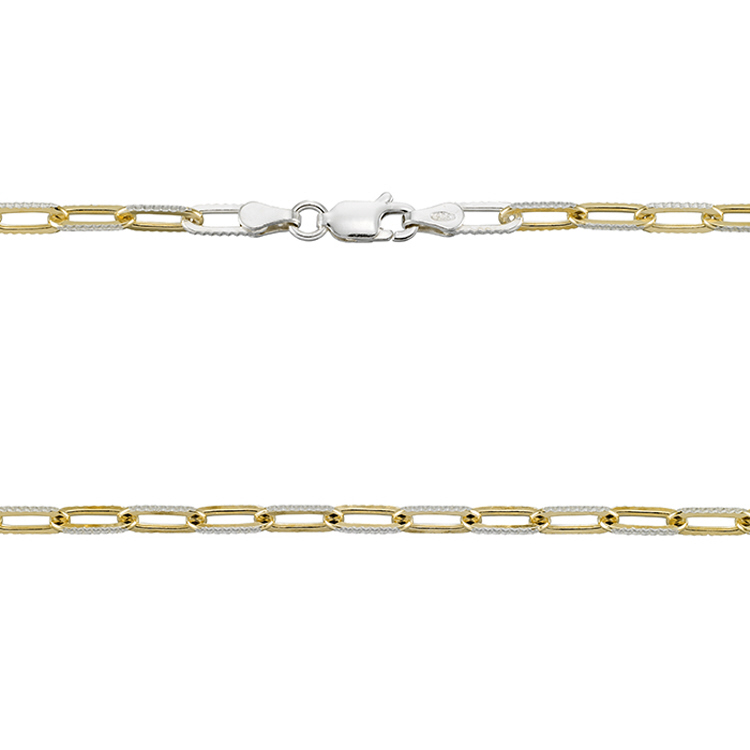Pave Look Paper Clip Chain 3.3 x 8.8mm 20" with lobster - Stelring Silver Gold Plated Two Tone