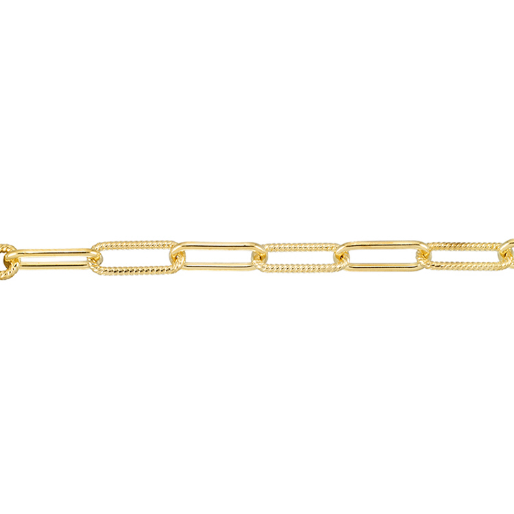 Fancy Cable/Paper Clip Chain 4.3mm with alternate textured link - Sterling Silver Gold Plated