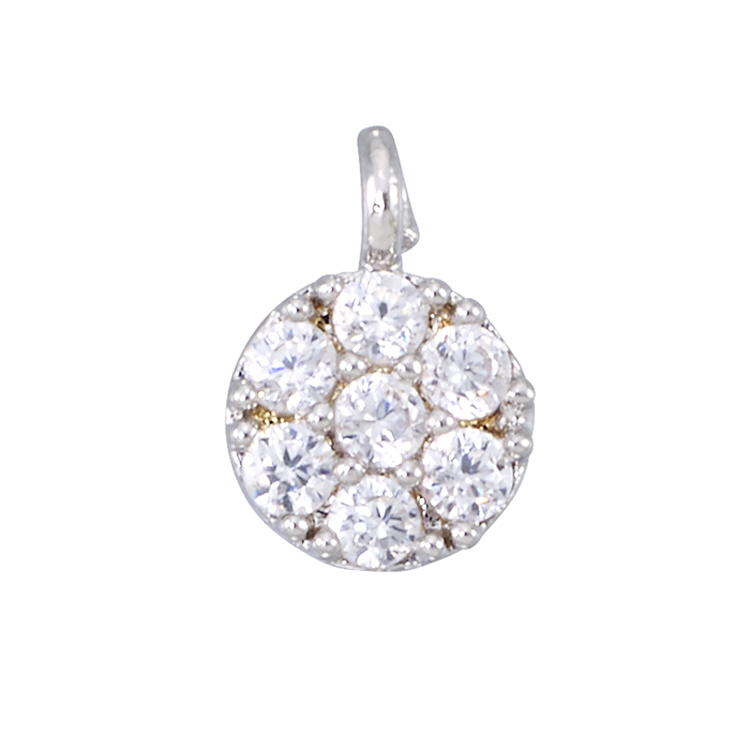 Round Charm - 5mm w/Cubic Zirconia (CZ) - Sterling Silver Rhodium Plated