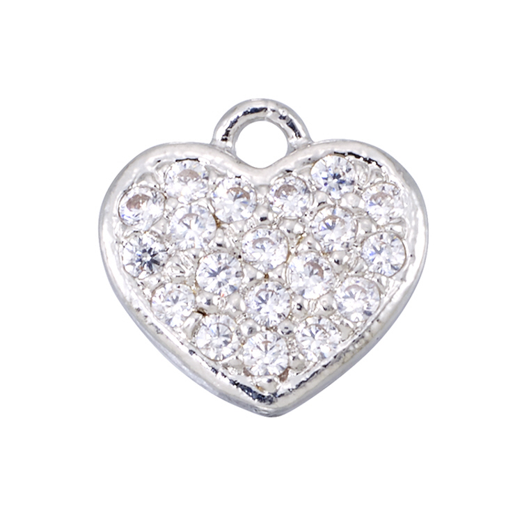 Heart Charm - 9.1 x 7.6mm w/Cubic Zirconia (CZ) - Sterling Silver Rhodium Plated