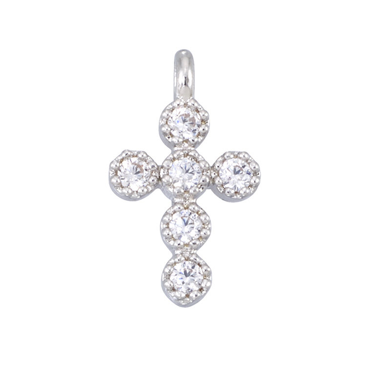 Cross - 6 x 8.3mm w/Cubic Zirconia (CZ) - Sterling Silver Rhodium Plated