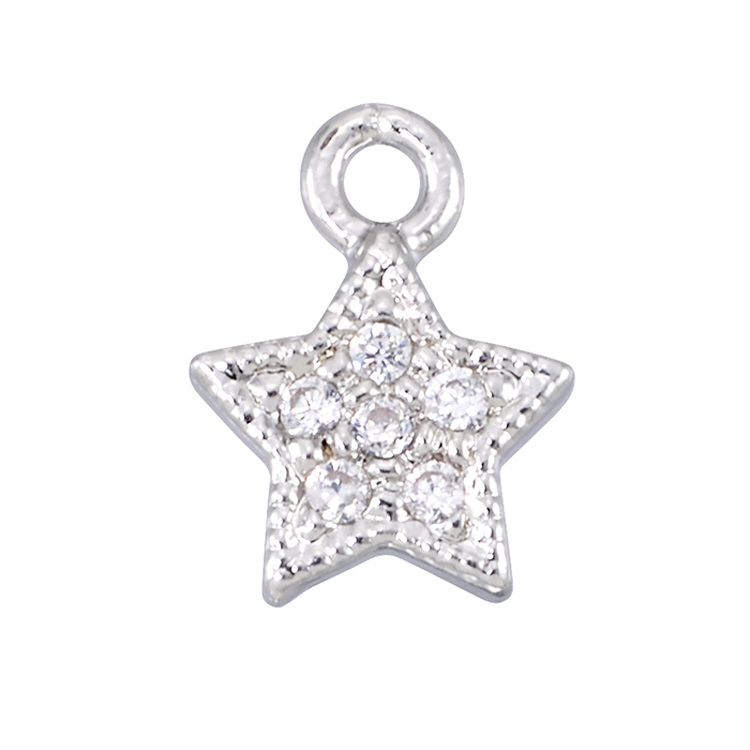 Star Charm - 6.5 x 6.4mm w/Cubic Zirconia (CZ) - Sterling Silver Rhodium Plated