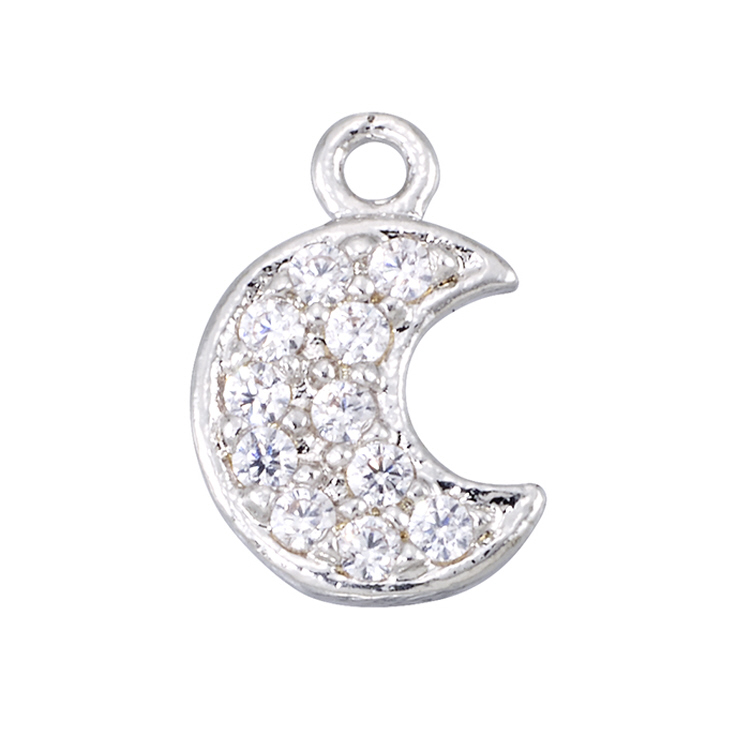 Moon Charm - 6.9 x 7.9mm w/Cubic Zirconia (CZ) - Sterling Silver Rhodium Plated