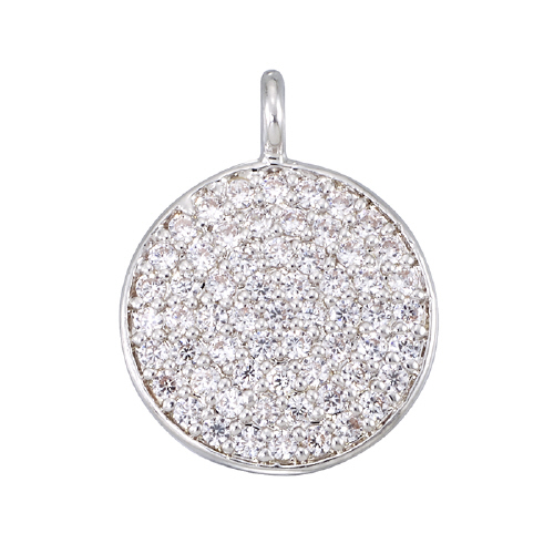 Round-Large Charm - 10.8mm w/Cubic Zirconia (CZ) - Sterling Silver Rhodium Plated
