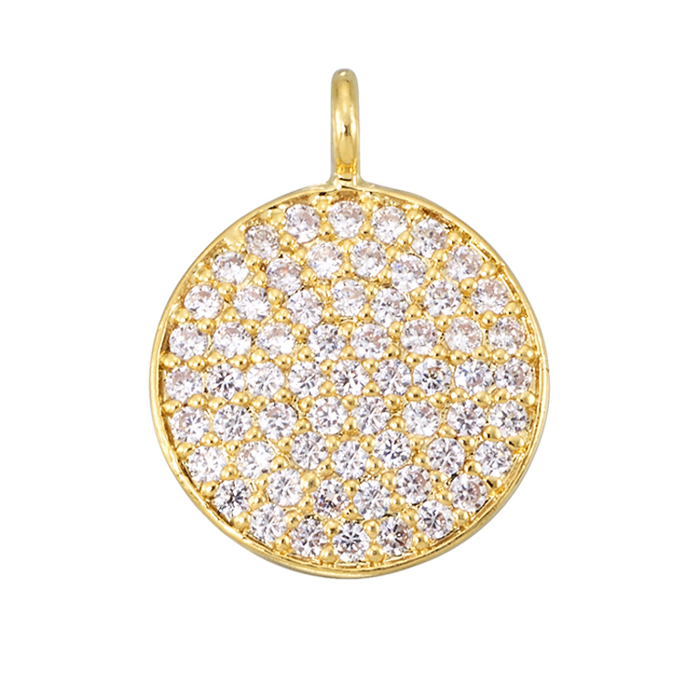 Round-Large Charm - 10.8mm w/Cubic Zirconia (CZ) - Sterling Silver Gold Plated